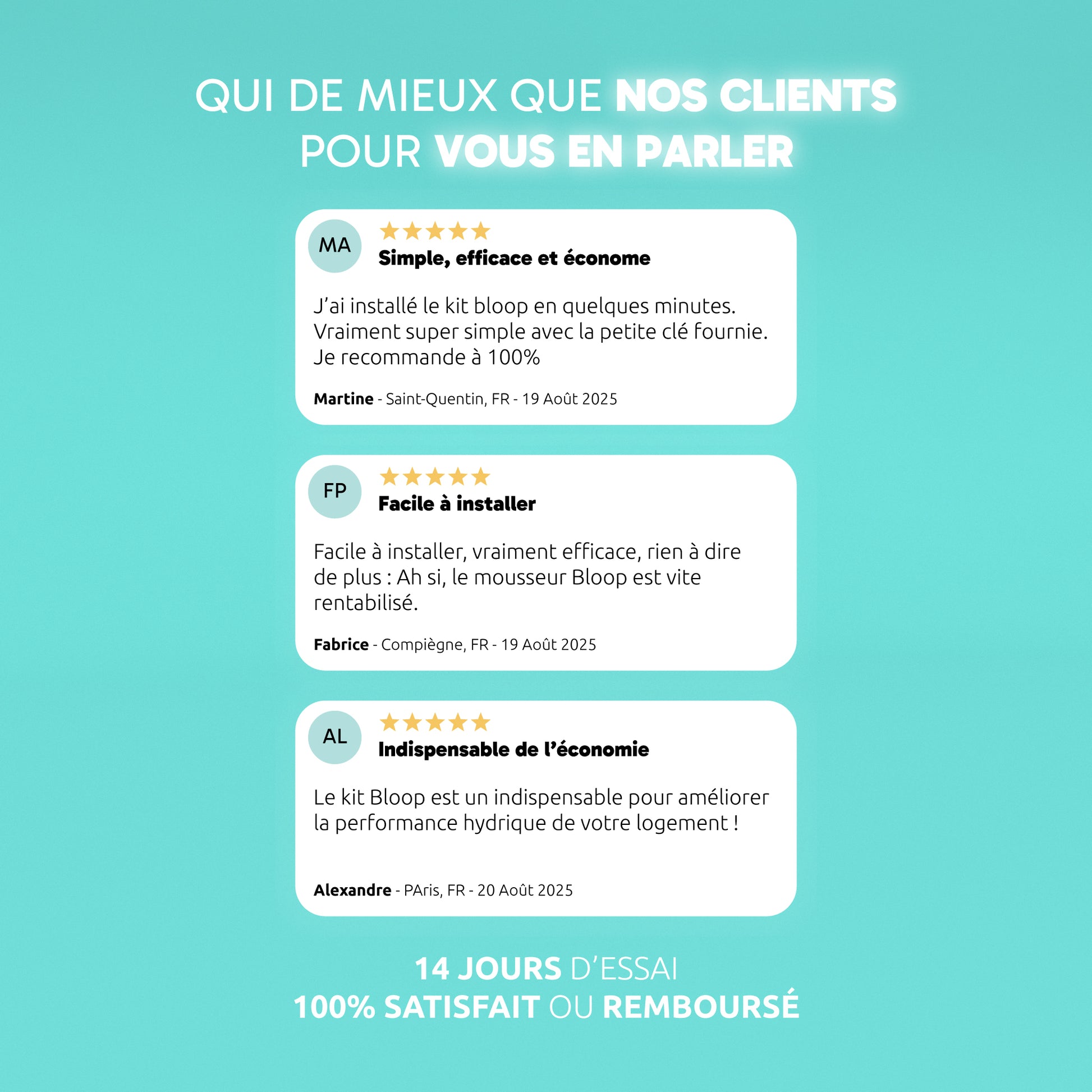 Facile à installer, vraiment efficace, rien a dire de plus : Ah si, le mousseur Bloop est vite rentabilisé.